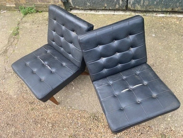 These two chairs were too cool to just walk pass when visiting a local vintage market. Such a shame that the original faux leather was in bad shape however, that allowed us to have some fun with some new fabric, to provide the chair with a fresh, modern twist.